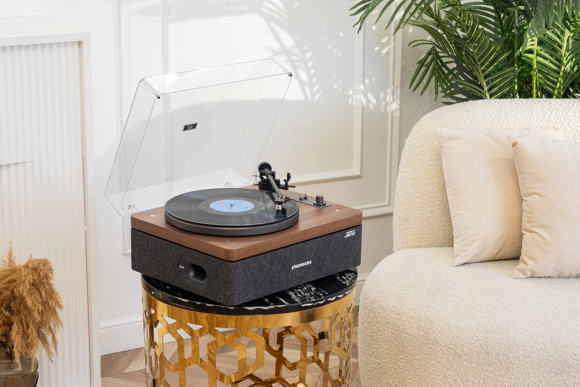 Проигрыватель развязан от колонок и создаваемых ими вибраций, что обеспечивает более точное воспроизведение пластинок.